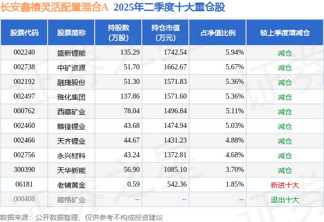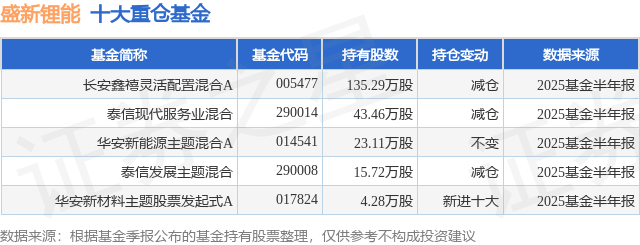 根据2025基金半年报公募基金重仓股数据,重仓该股的公募基金共5家,其中持有数量最多的公募基金为长安基金的长安鑫禧灵活配置混合A。长安鑫禧灵活配置混合A目前规模为0.62亿元,最新净值0.36(7月23日),较上一交易日下跌0.58%,近一年下跌14.08%。该公募基金现任基金经理为江博文。江博文在任的基金产品包括:长安裕泰混合A,管理时间为2024年7月9日至今,期间收益率为17.47%;长安鑫旺价值混合A,管理时间为2024年10月10日至今,期间收益率为-2.37%;长安鑫利优选混合A,管理时间为2025年1月23日至今,期间收益率为0.94%;