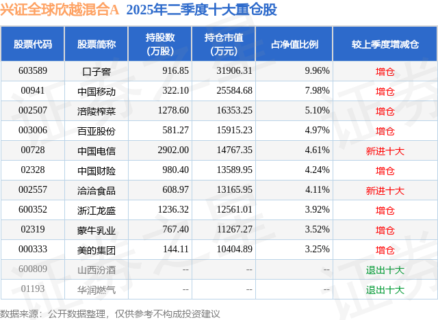 兴证全球欣越混合A的前十大重仓股如下: