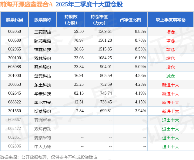 前海开源盛鑫混合A的前十大重仓股如下: