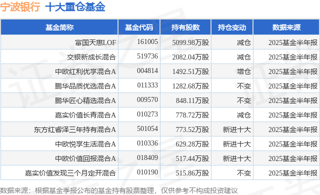 重仓宁波银行的前十大公募基金请见下表: