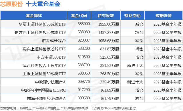 重仓芯原股份的前十大公募基金请见下表:
