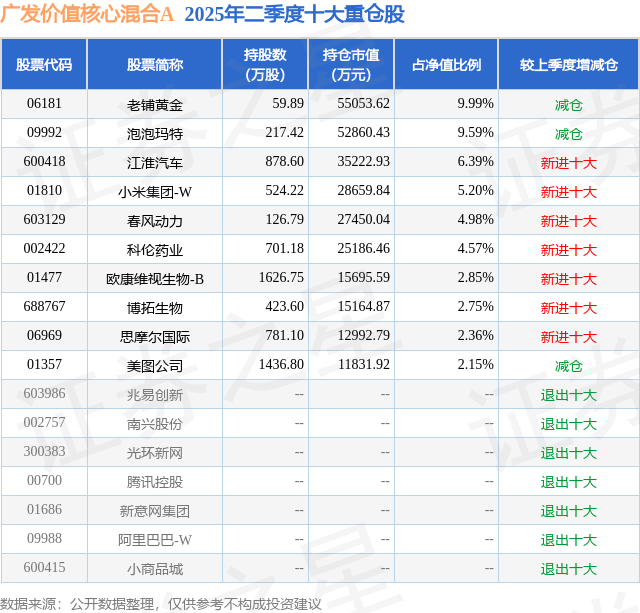 根据2025基金半年报公募基金重仓股数据,重仓该股的公募基金共106家,其中持有数量最多的公募基金为广发基金的广发价值核心混合A。广发价值核心混合A目前规模为35.16亿元,最新净值0.8465(7月24日),较上一交易日上涨1.93%,近一年上涨81.15%。该公募基金现任基金经理为吴远怡。吴远怡在任的基金产品包括:广发创新升级混合,管理时间为2020年9月30日至今,期间收益率为-30.06%;广发科技创新混合A,管理时间为2020年11月18日至今,期间收益率为54.18%;广发北交所精选两年定开混合A,管理时间为2021年11月23日至今,期间收益率为65.56%;