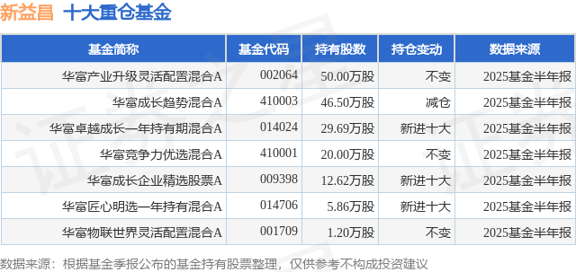 重仓新益昌的公募基金请见下表: