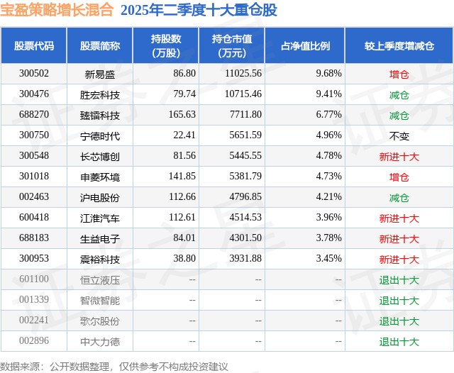 根据2025基金半年报公募基金重仓股数据,重仓该股的公募基金共6家,其中持有数量最多的公募基金为宝盈基金的宝盈策略增长混合。宝盈策略增长混合目前规模为11.39亿元,最新净值1.2528(8月7日),较上一交易日下跌0.82%,近一年上涨84.1%。该公募基金现任基金经理为容志能。容志能在任的基金产品包括:宝盈转型动力混合A,管理时间为2023年3月17日至今,期间收益率为81.76%;宝盈国家安全沪港深股票A,管理时间为2023年3月17日至今,期间收益率为15.4%;宝盈创新驱动股票A,管理时间为2023年4月15日至今,期间收益率为40.0%;宝盈科技30混合,管理时间为2024年12月24日至今,期间收益率为40.17%。