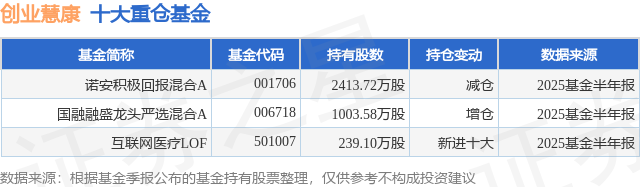 重仓创业慧康的公募基金请见下表: