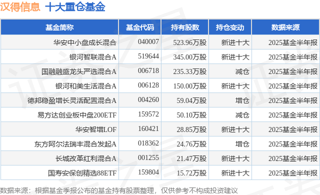 重仓汉得信息的前十大公募基金请见下表: