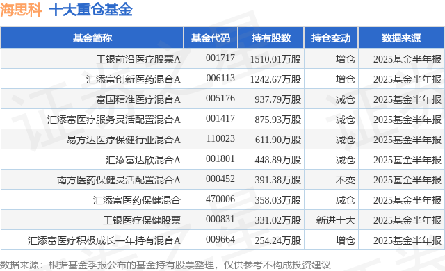 重仓海思科的前十大公募基金请见下表: