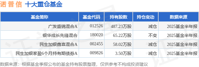 重仓诺 普 信的公募基金请见下表: