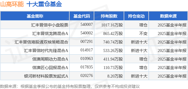 重仓山高环能的公募基金请见下表: