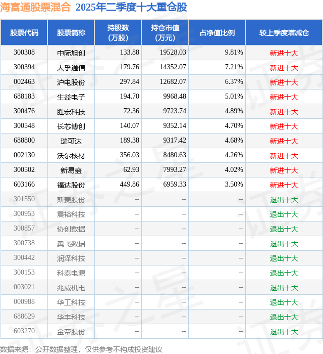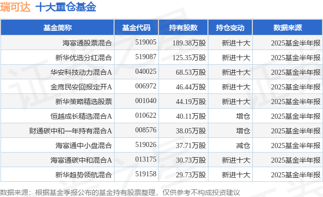 根据2025基金半年报公募基金重仓股数据,重仓该股的公募基金共29家,其中持有数量最多的公募基金为海富通基金的海富通股票混合。海富通股票混合目前规模为19.91亿元,最新净值1.0303(8月7日),较上一交易日下跌0.99%,近一年上涨38.82%。该公募基金现任基金经理为吕越超。吕越超在任的基金产品包括:海富通先进制造股票A,管理时间为2019年12月17日至今,期间收益率为24.09%;海富通科技创新混合A,管理时间为2020年3月10日至今,期间收益率为3.0%。