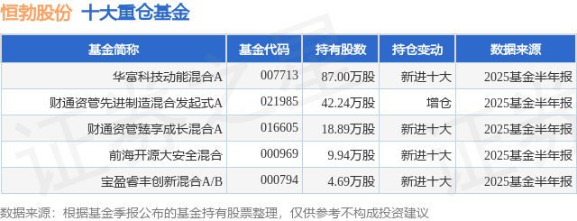 重仓恒勃股份的公募基金请见下表: