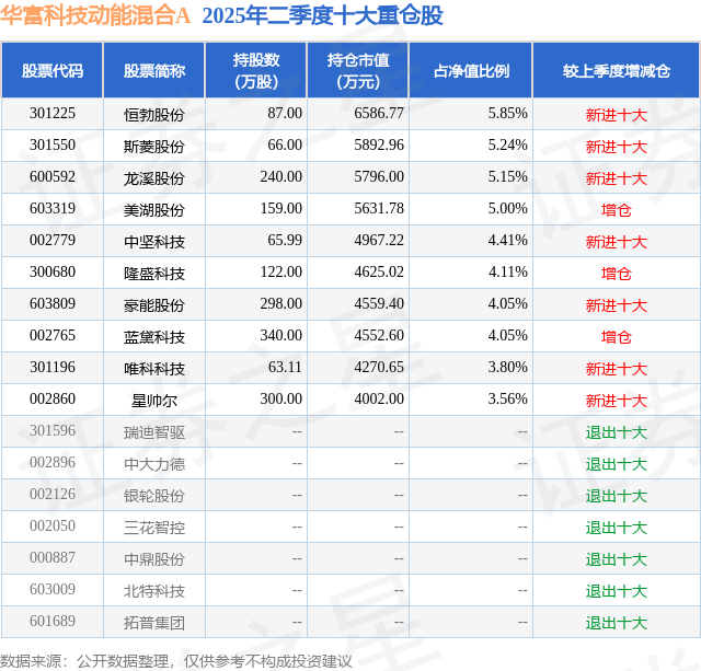 华富科技动能混合A的前十大重仓股如下: