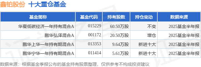 重仓鑫铂股份的公募基金请见下表: