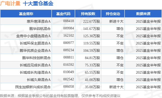 重仓广电计量的前十大公募基金请见下表: