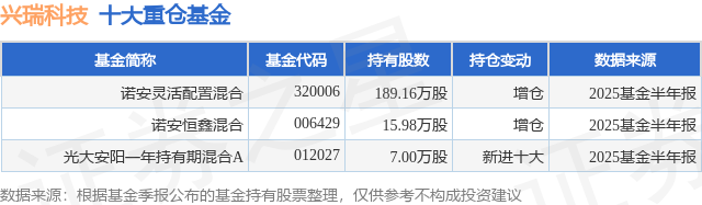 根据2025基金半年报公募基金重仓股数据,重仓该股的公募基金共3家,其中持有数量最多的公募基金为诺安基金的诺安灵活配置混合。诺安灵活配置混合目前规模为6.57亿元,最新净值2.925(8月8日),较上一交易日上涨0.27%,近一年上涨13.15%。该公募基金现任基金经理为刘晓飞。刘晓飞在任的基金产品包括:诺安恒鑫混合,管理时间为2022年11月12日至今,期间收益率为13.21%;