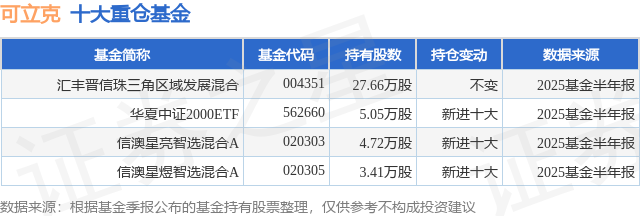 重仓可立克的公募基金请见下表: