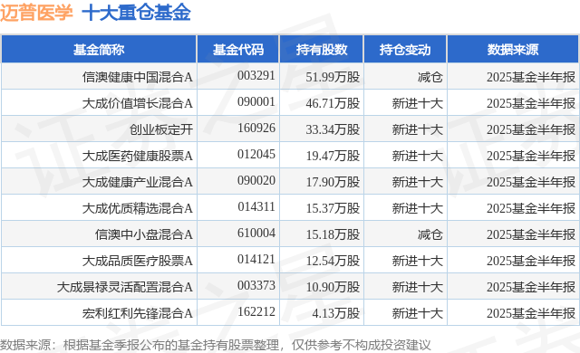 重仓迈普医学的前十大公募基金请见下表: