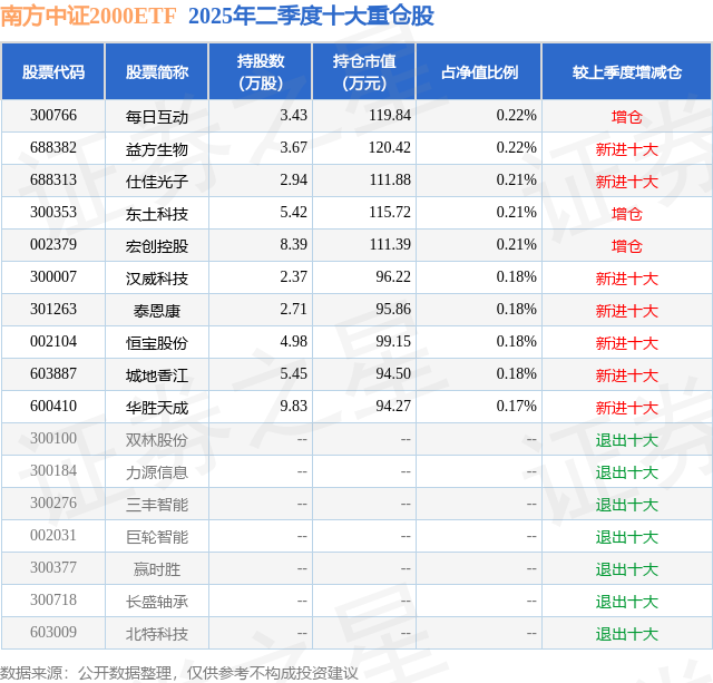 南方中证2000ETF的前十大重仓股如下: