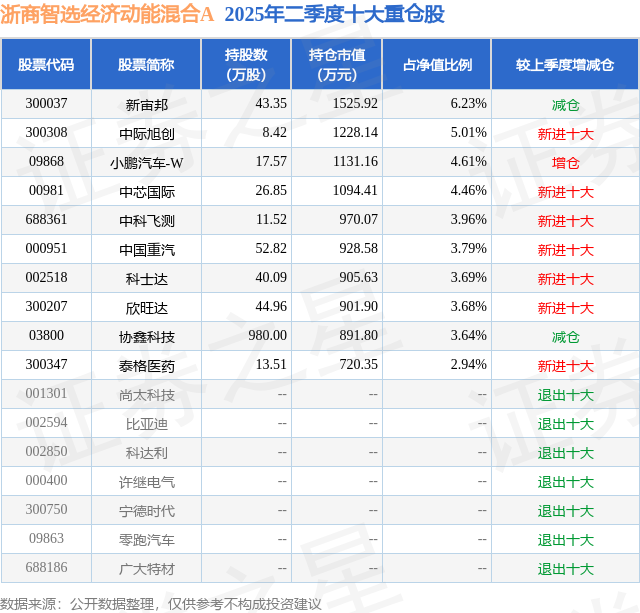 浙商智选经济动能混合A的前十大重仓股如下: