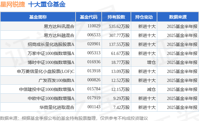 重仓星网锐捷的前十大公募基金请见下表: