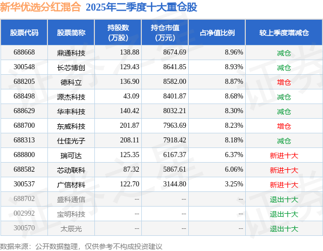 根据2025基金半年报公募基金重仓股数据,重仓该股的公募基金共30家,其中持有数量最多的公募基金为新华基金的新华优选分红混合。新华优选分红混合目前规模为9.68亿元,最新净值0.8584(8月11日),较上一交易日上涨2.69%,近一年上涨80.98%。该公募基金现任基金经理为赵强。赵强在任的基金产品包括:新华策略精选股票,管理时间为2017年5月17日至今,期间收益率为137.59%;新华安享多裕定开混合,管理时间为2022年10月25日至今,期间收益率为-21.74%;新华趋势领航混合,管理时间为2022年10月25日至今,期间收益率为-10.83%。