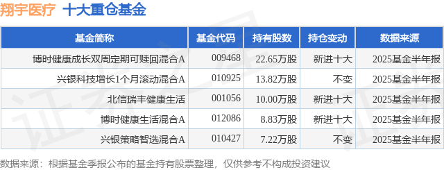根据2025基金半年报公募基金重仓股数据,重仓该股的公募基金共5家,其中持有数量最多的公募基金为博时基金的博时健康成长双周定期可赎回混合A。博时健康成长双周定期可赎回混合A目前规模为3.75亿元,最新净值1.0217(8月11日),较上一交易日上涨1.5%,近一年上涨35.79%。该公募基金现任基金经理为陈西铭。陈西铭在任的基金产品包括:博时健康生活混合A,管理时间为2023年3月14日至今,期间收益率为-2.04%;博时医疗保健行业混合A,管理时间为2023年3月14日至今,期间收益率为-11.71%。