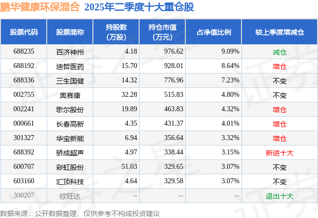 根据2025基金半年报公募基金重仓股数据,重仓该股的公募基金共5家,其中持有数量最多的公募基金为鹏华基金的鹏华健康环保混合。鹏华健康环保混合目前规模为1.07亿元,最新净值2.23(8月12日),较上一交易日上涨0.04%,近一年上涨32.66%。该公募基金现任基金经理为蒋鑫。蒋鑫在任的基金产品包括:鹏华普天收益混合,管理时间为2017年7月29日至今,期间收益率为101.74%;鹏华优选成长混合A,管理时间为2020年12月16日至今,期间收益率为-24.11%;鹏华远见成长混合A,管理时间为2021年6月2日至今,期间收益率为-17.14%。