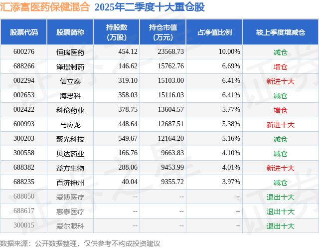根据2025基金半年报公募基金重仓股数据,重仓该股的公募基金共31家,其中持有数量最多的公募基金为汇添富基金的汇添富医药保健混合。汇添富医药保健混合目前规模为23.58亿元,最新净值2.0(8月12日),较上一交易日下跌0.6%,近一年上涨32.98%。该公募基金现任基金经理为郑磊。郑磊在任的基金产品包括:汇添富中盘积极成长混合A,管理时间为2020年3月13日至今,期间收益率为21.79%;汇添富医疗积极成长一年持有混合A,管理时间为2020年8月21日至今,期间收益率为-19.91%;汇添富成长领先混合A,管理时间为2021年12月10日至今,期间收益率为-2.53%。