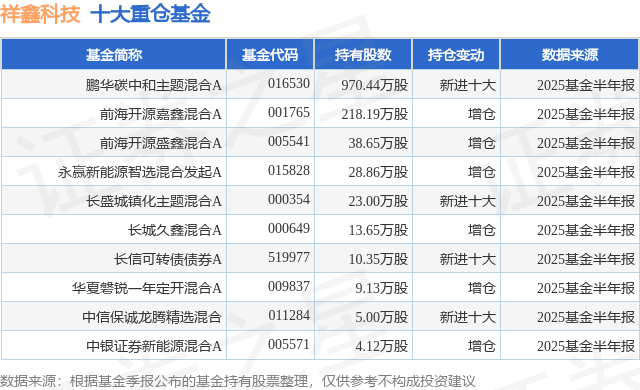 重仓祥鑫科技的前十大公募基金请见下表: