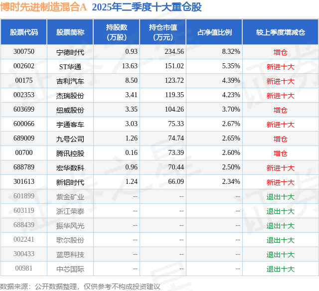 根据2025基金半年报公募基金重仓股数据,重仓该股的公募基金共3家,其中持有数量最多的公募基金为博时基金的博时先进制造混合A。博时先进制造混合A目前规模为0.17亿元,最新净值0.816(8月13日),较上一交易日上涨1.73%,近一年上涨23.17%。该公募基金现任基金经理为李喆 郭永升。李喆在任的基金产品包括:博时逆向投资混合A,管理时间为2020年10月28日至今,期间收益率为-0.08%;博时凤凰领航混合A,管理时间为2021年9月22日至今,期间收益率为-22.59%;博时高端装备混合A,管理时间为2022年6月29日至今,期间收益率为-28.24%。