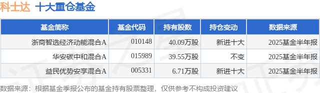 重仓科士达的公募基金请见下表: