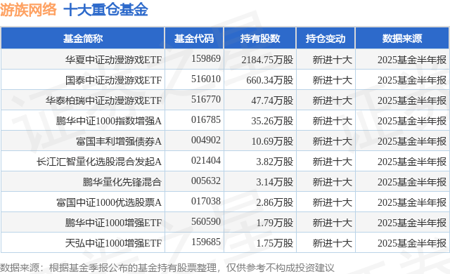 根据2025基金半年报公募基金重仓股数据,重仓该股的公募基金共12家,其中持有数量最多的公募基金为华夏基金的华夏中证动漫游戏ETF。华夏中证动漫游戏ETF目前规模为70.73亿元,最新净值1.3898(8月14日),较上一交易日上涨0.83%,近一年上涨83.69%。该公募基金现任基金经理为鲁亚运。鲁亚运在任的基金产品包括:华夏创业板成长ETF联接A,管理时间为2022年6月10日至今,期间收益率为-17.68%;华夏中证全指证券公司ETF联接A,管理时间为2022年6月10日至今,期间收益率为31.19%;华夏国证疫苗与生物科技指数发起A,管理时间为2022年9月6日至今,期间收益率为-28.51%;华夏战略新兴成指ETF联接A,管理时间为2023年3月27日至今,期间收益率为1.05%。