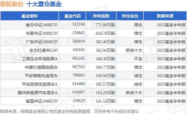 根据2025基金半年报公募基金重仓股数据,重仓该股的公募基金共59家,其中持有数量最多的公募基金为南方基金的南方中证1000ETF。南方中证1000ETF目前规模为649.53亿元,最新净值2.8195(8月14日),较上一交易日下跌1.24%,近一年上涨51.66%。该公募基金现任基金经理为崔蕾。崔蕾在任的基金产品包括:南方中证申万有色金属ETF发起联接A,管理时间为2019年7月12日至今,期间收益率为100.85%;南方中证申万有色金属ETF,管理时间为2019年7月12日至今,期间收益率为105.12%;南方红利低波50ETF,管理时间为2020年1月17日至今,期间收益率为97.11%。