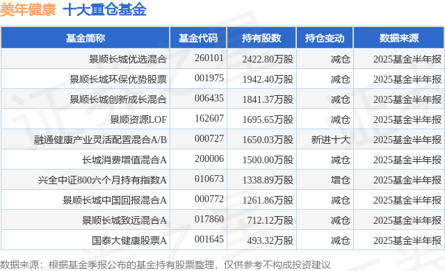 重仓美年健康的前十大公募基金请见下表: