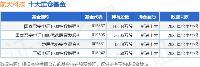 根据2025基金半年报公募基金重仓股数据,重仓该股的公募基金共4家,其中持有数量最多的公募基金为国泰海通资管的国泰君安中证1000指数增强A。国泰君安中证1000指数增强A目前规模为7.86亿元,最新净值1.3412(8月14日),较上一交易日下跌1.4%,近一年上涨67.69%。该公募基金现任基金经理为胡崇海 刘晟。胡崇海在任的基金产品包括:国泰君安中证500指数增强A,管理时间为2021年12月15日至今,期间收益率为16.38%;国泰君安量化选股混合发起A,管理时间为2022年8月18日至今,期间收益率为36.88%;国泰君安科技创新精选三个月持有股票发起A,管理时间为2022年11月16日至今,期间收益率为30.59%。