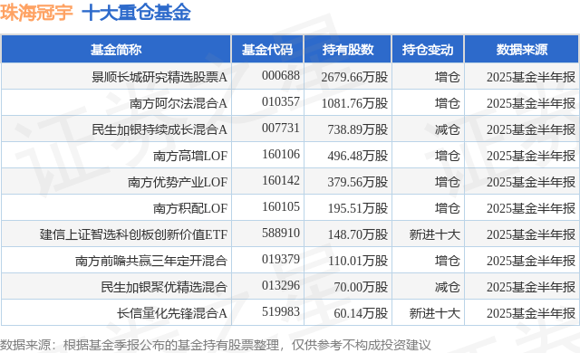 重仓珠海冠宇的前十大公募基金请见下表: