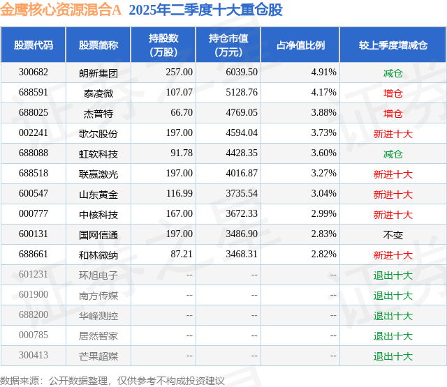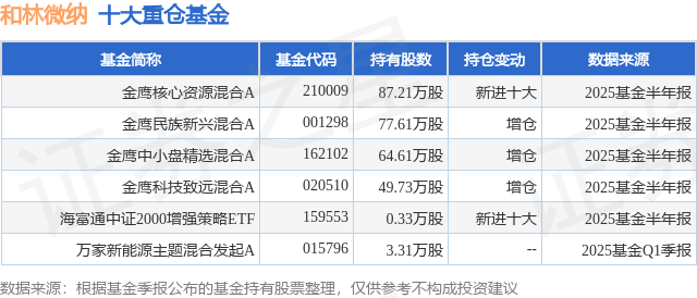 根据2025基金半年报公募基金重仓股数据,重仓该股的公募基金共5家,其中持有数量最多的公募基金为金鹰基金的金鹰核心资源混合A。金鹰核心资源混合A目前规模为10.69亿元,最新净值2.4832(8月14日),较上一交易日下跌1.06%,近一年上涨72.4%。该公募基金现任基金经理为陈颖。陈颖在任的基金产品包括:金鹰红利价值混合A,管理时间为2020年4月28日至今,期间收益率为158.35%;金鹰科技创新股票A,管理时间为2021年5月18日至今,期间收益率为104.94%;金鹰科技致远混合A,管理时间为2024年3月19日至今,期间收益率为73.17%。