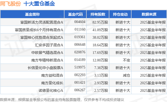 重仓同飞股份的前十大公募基金请见下表: