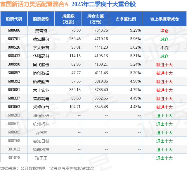 富国新活力灵活配置混合A的前十大重仓股如下: