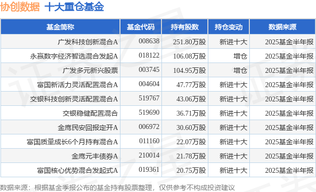 重仓协创数据的前十大公募基金请见下表: