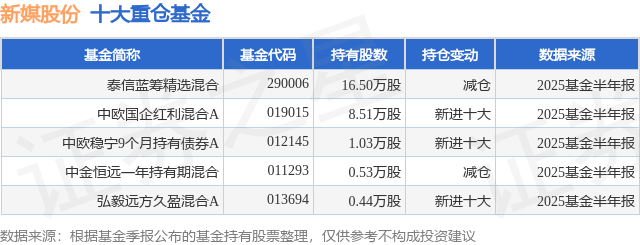 重仓新媒股份的公募基金请见下表: