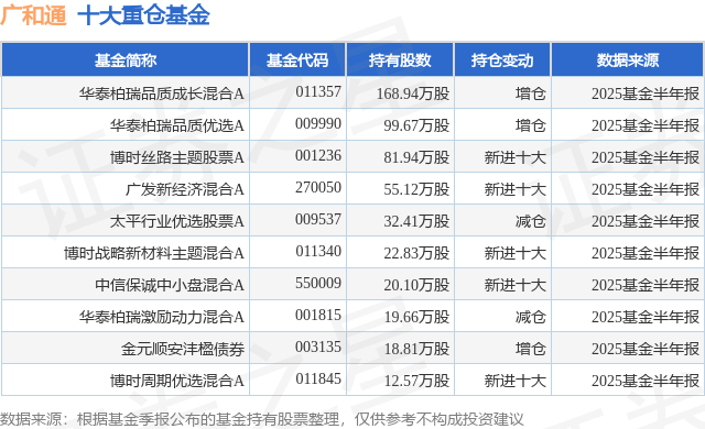 根据2025基金半年报公募基金重仓股数据,重仓该股的公募基金共14家,其中持有数量最多的公募基金为华泰柏瑞基金的华泰柏瑞品质成长混合A。华泰柏瑞品质成长混合A目前规模为11.78亿元,最新净值0.6796(8月15日),较上一交易日上涨1.57%,近一年上涨31.15%。该公募基金现任基金经理为沈雪峰。沈雪峰在任的基金产品包括:华泰柏瑞激励动力混合A,管理时间为2020年6月30日至今,期间收益率为-5.77%;华泰柏瑞品质优选A,管理时间为2020年8月28日至今,期间收益率为-21.81%;华泰柏瑞优势领航混合A,管理时间为2020年9月24日至今,期间收益率为-15.95%;