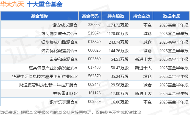 重仓华大九天的前十大公募基金请见下表: