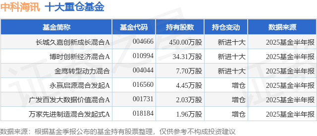 重仓中科海讯的公募基金请见下表: