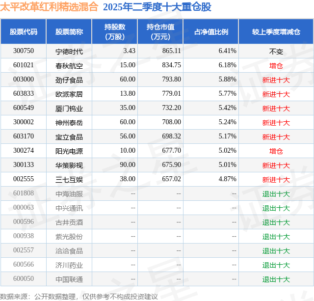 根据2025基金半年报公募基金重仓股数据,重仓该股的公募基金共6家,其中持有数量最多的公募基金为太平基金的太平改革红利精选混合。太平改革红利精选混合目前规模为1.35亿元,最新净值1.4319(8月19日),较上一交易日上涨0.09%,近一年上涨44.99%。该公募基金现任基金经理为徐闯。徐闯在任的基金产品包括:太平智远三个月定开股票发起式,管理时间为2023年7月5日至今,期间收益率为8.5%;太平先进制造混合发起式A,管理时间为2024年4月26日至今,期间收益率为33.81%;太平MSCI香港价值增强A,管理时间为2024年11月13日至今,期间收益率为27.04%。