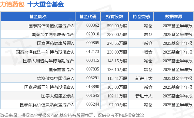 根据2025基金半年报公募基金重仓股数据,重仓该股的公募基金共14家,其中持有数量最多的公募基金为国泰基金的国泰聚信价值优势混合A。国泰聚信价值优势混合A目前规模为13.87亿元,最新净值2.405(8月20日),较上一交易日上涨0.33%,近一年上涨49.1%。该公募基金现任基金经理为程洲。程洲在任的基金产品包括:国泰金牛创新成长混合,管理时间为2015年1月26日至今,期间收益率为134.66%;国泰大农业股票A,管理时间为2017年6月15日至今,期间收益率为76.09%;国泰聚优价值灵活配置混合A,管理时间为2017年11月15日至今,期间收益率为78.54%。