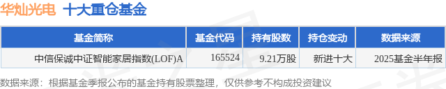 根据2025基金半年报公募基金重仓股数据,重仓该股的公募基金共1家,其中持有数量最多的公募基金为中信保诚基金的中信保诚中证智能家居指数(LOF)A。中信保诚中证智能家居指数(LOF)A目前规模为0.45亿元,最新净值1.1588(8月20日),较上一交易日上涨1.88%,近一年上涨78.19%。该公募基金现任基金经理为黄稚。黄稚在任的基金产品包括:中信保诚中证500指数(LOF)A,管理时间为2018年7月25日至今,期间收益率为75.31%;中信保诚中证TMT(LOF)A,管理时间为2019年9月4日至今,期间收益率为43.3%;中信保诚中证信息安全指数(LOF)A,管理时间为2019年9月4日至今,期间收益率为7.9%;