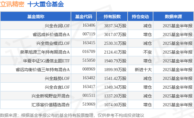 重仓立讯精密的前十大公募基金请见下表: