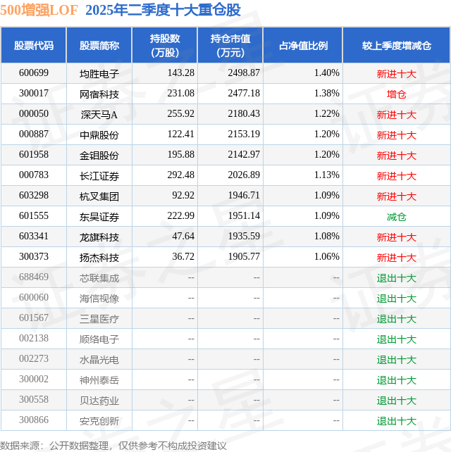 500增强LOF的前十大重仓股如下: