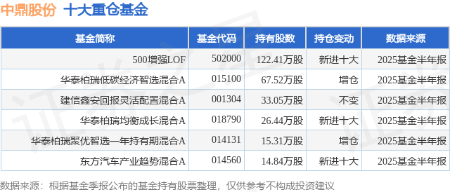 重仓中鼎股份的公募基金请见下表: